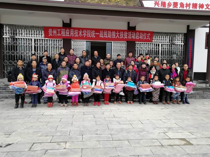 2018年1月9日,贵州工程应用技术学院统一战线助推大扶贫启动仪式在大方县兴隆乡举行。贵州工程应用技术学院党委副书记汤宇华出席活动,九三学社毕节市委主委、贵州工程应用技术学院艺术学院院长周正军率社市委机关干部及贵州工程应用技术学院支社部分社员代表参加活动。