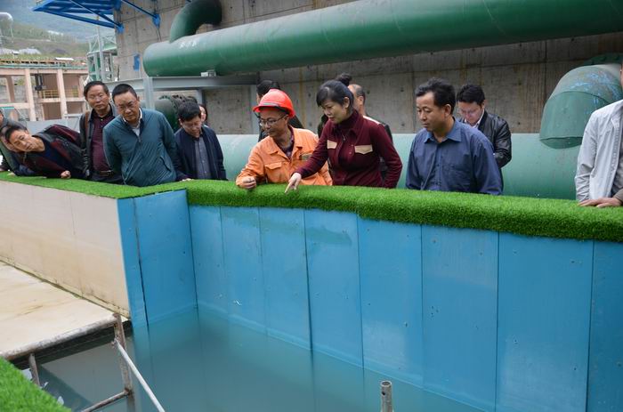 上午,巡查组一行前往开阳县金中镇开磷矿业沙坝矿洞污水处理站,现场查看污水处理站工作情况。这次巡查是今年的第二次巡查,开阳县政府相关部门负责人向调研组汇报了洋水河河长制落实情况和洋水河综合治理情况。洋水河是乌江干流的四条一级支流之一,因沿岸磷化工企业污水排放不达标,洋水河总磷超标,流入乌江后,成为乌江中游磷污染的两大污染源之一。根据省、市相关要求,开阳县深入落实“河长制”,采取“政府+企业”合作模式,积极引入第三方治理,着力实施工程治理和地表水流域环境综合整治。巡查组还到金中镇白杨村铁路桥洋水河流经地域实地巡查了水质和污水排放情况。