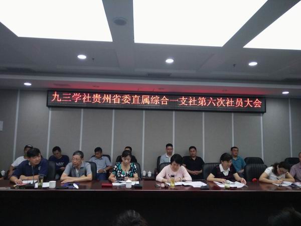 2016年8月26日,九三学社贵州省委直属综合一支社第六次社员大会召开,审议通过支社第五届委员会工作报告,选举产生新一届领导班子。九三学社贵州省委专职副主委程绍雨、副巡视员周洪梅到会指导,支社37名社员参加会议。